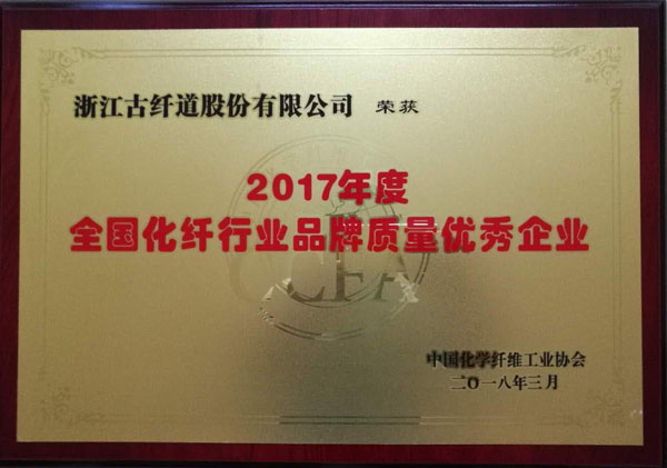 2017年度全國化纖行業(yè)品牌質(zhì)量優(yōu)秀企業(yè)